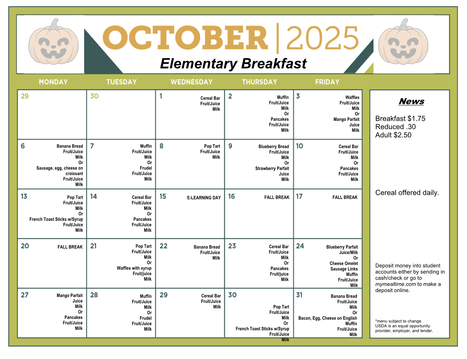 ES – October Breakfast Menu