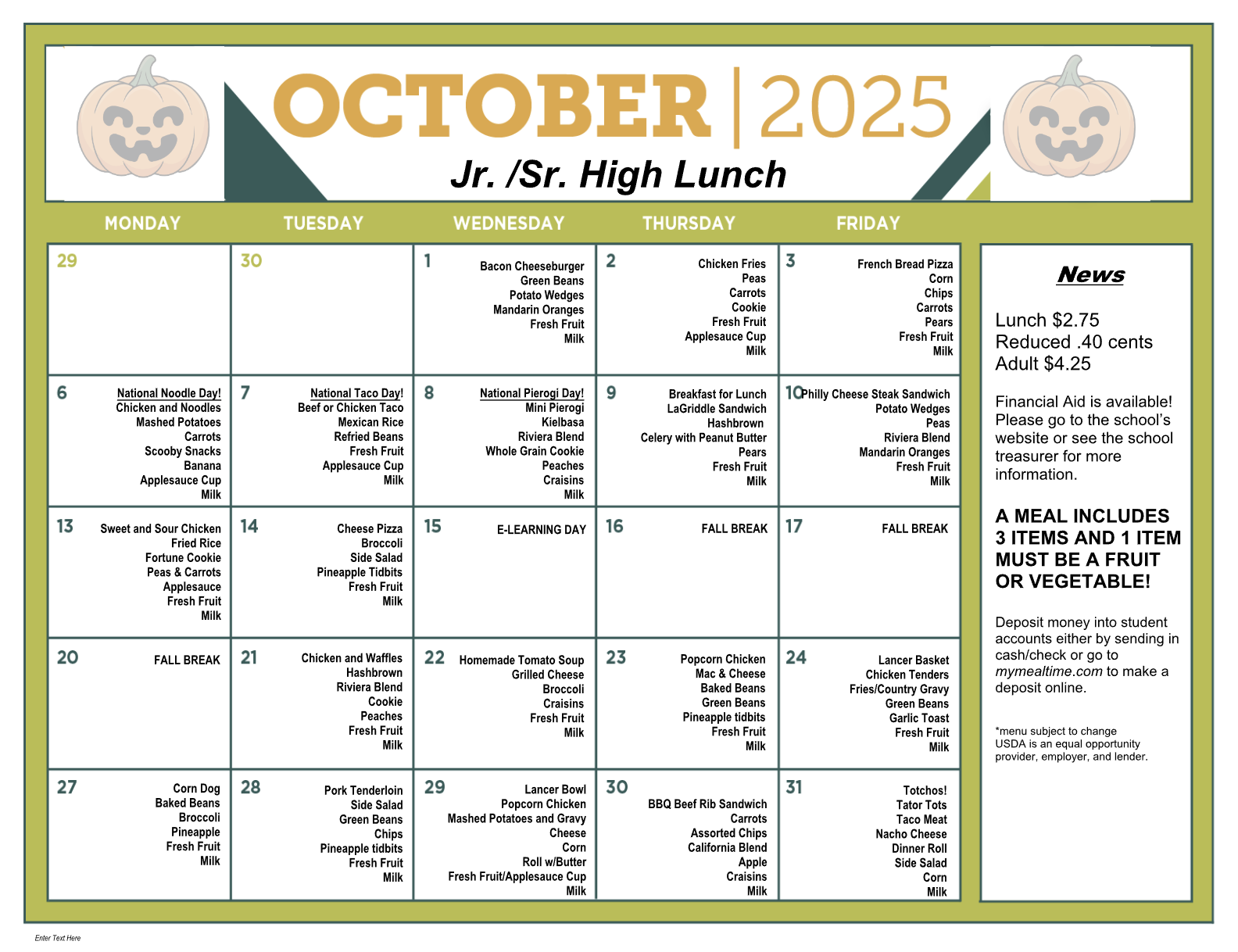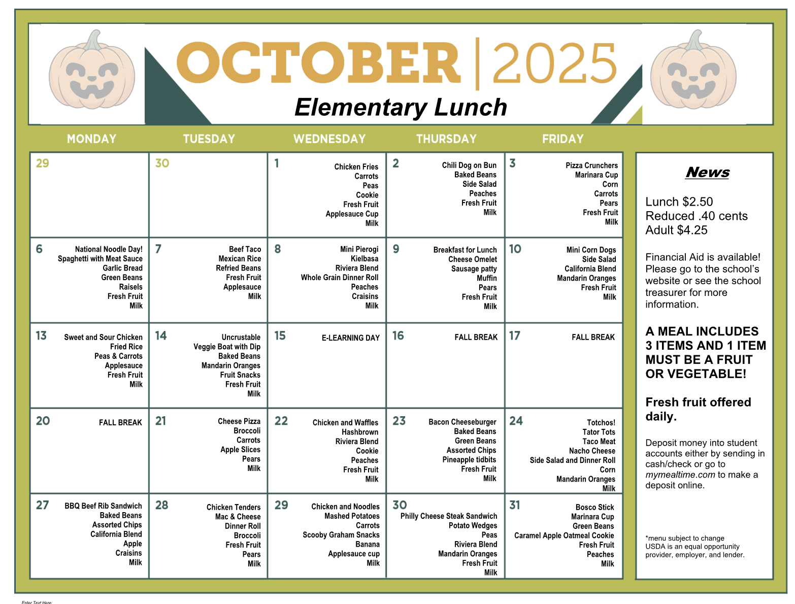 ES – October Lunch Menu
